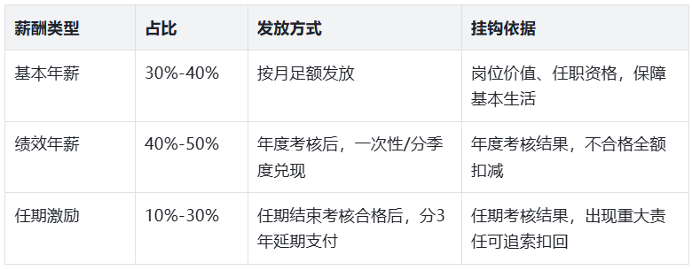 考核与薪酬挂钩规则、任期激励约定;