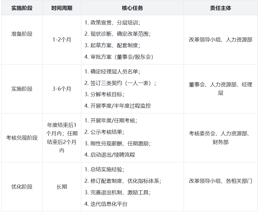 契约刚性:聘任协议、业绩责任书条款清晰,考核、兑现、退出严格按契约执行,不搞变通。